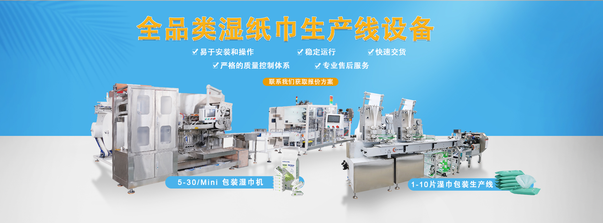 公司產(chǎn)品有單片四邊封濕巾機、1-10片裝背封濕巾機、5-30片裝背封濕巾機、6道全自動濕巾機、6道半自動濕巾機、12道全自動濕巾機、16道全自動濕巾機、20道全自動濕巾機、52道全自動濕巾機等。